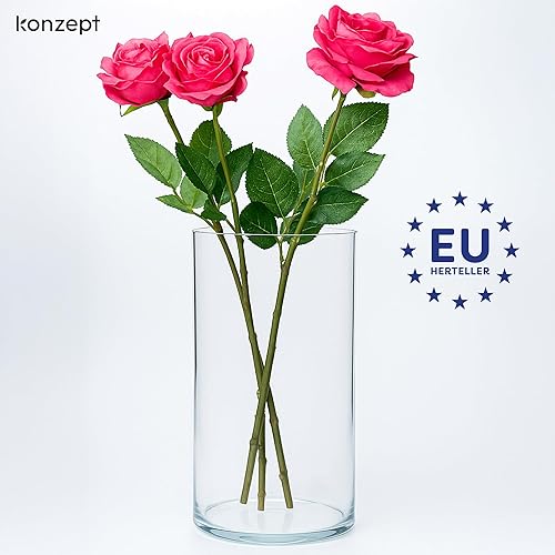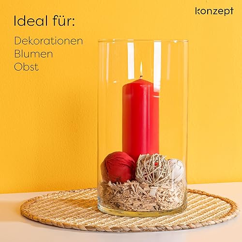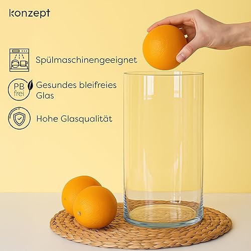 KONZEPT Vase cylindrique en verre (30 cm de haut, Ø 16 cm) – Grand vase transparent pour décorations dans les magasins de fleurs, idéal pour les fleurs fraîches, artificielles et séchées
