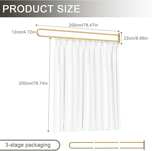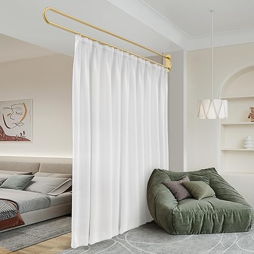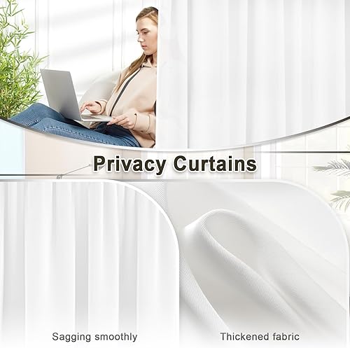 Rideaux de séparation d'intimité en forme de U, supports en métal, rideaux muraux à crochets plats blancs de 2 m, rideaux médicaux pour salon de beauté, chambre à coucher (blanc)