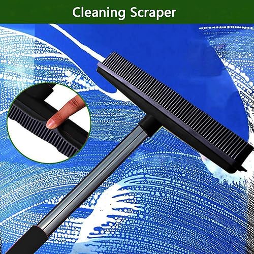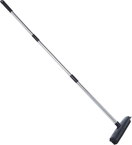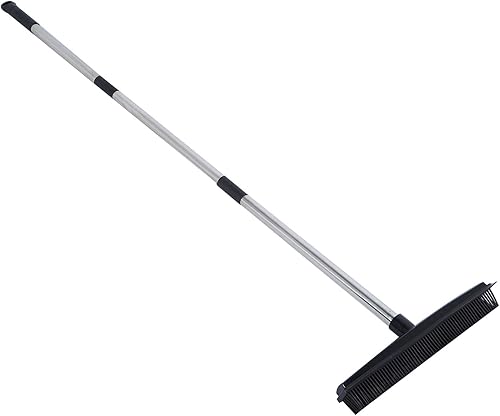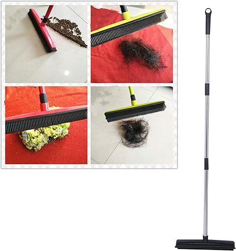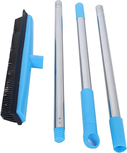 Balai télescopique de 100 cm avec poignée réglable - Brosse en caoutchouc pour poils d'animaux, dépoussiérage sur tapis, sols, carreaux, quotidien (bleu)
