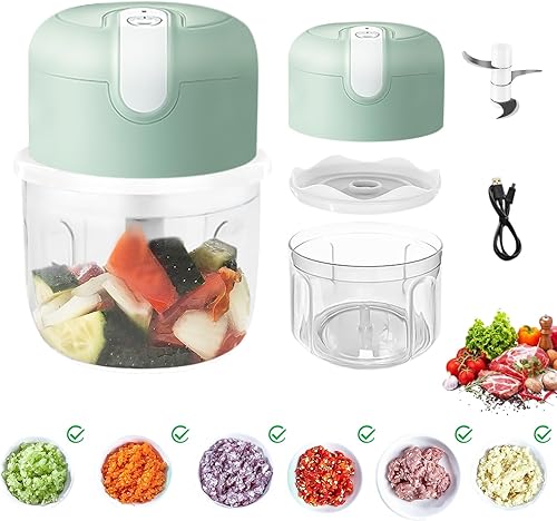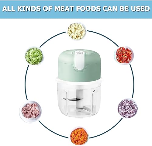Nizirioo Mini hachoir électrique, 250 ml, mini hachoir électrique de cuisine avec port USB, hachoir à ail, mini coupe-oignon, pour oignons, légumes, fruits, noix (vert clair)