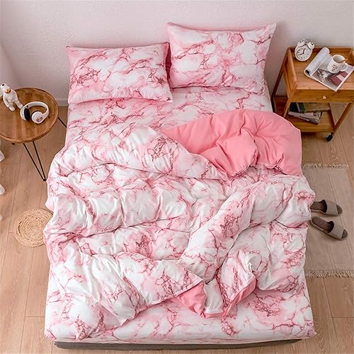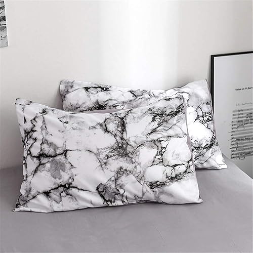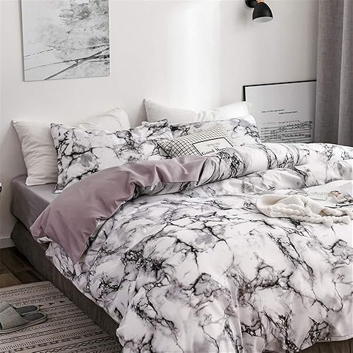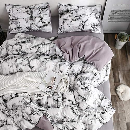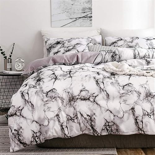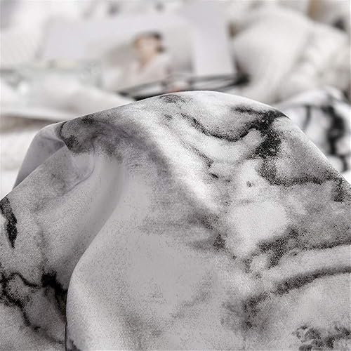 Treer Marbre Housse de Couette 180x220 cm avec 2 Taies d'oreiller 50x75 cm - Set da 3 Pezzi avec Fermeture Éclair Sets de Housse Couette en Microfibre, Noir Marbre Parure de Lit Adulte 2 Personne