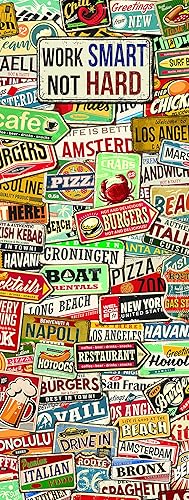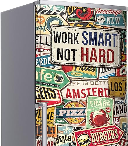 MEGADECOR - Autocollant décoratif en vinyle, pour réfrigérateur, avec motif de panneaux vintage et inscription « Work Smart, Not Hard » (185 x 60 cm)