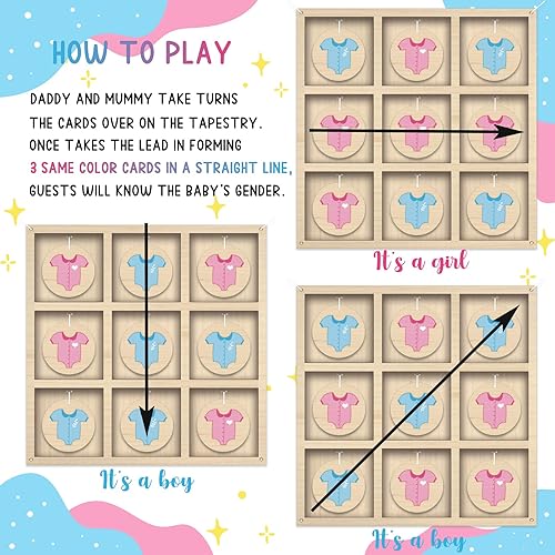 Jeu de société Tic Tac Toe en bois rustique pour elle ou lui, idées de révélation du sexe de bébé, panneau pour garçon et fille, kit de décoration de révélation du sexe