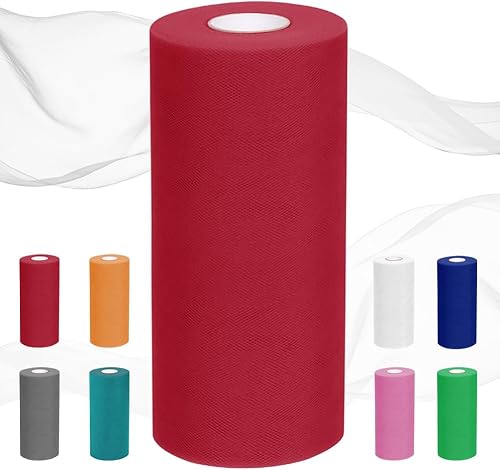 Rouleau de Tulle - 30 cm x 92 m - Tissu Tulle pour Noeud Voiture Mariage, Deco Mariage, Ruban Mariage Voiture, Noeud pour Chaise Mariage - Polyester Organza (Rouge)