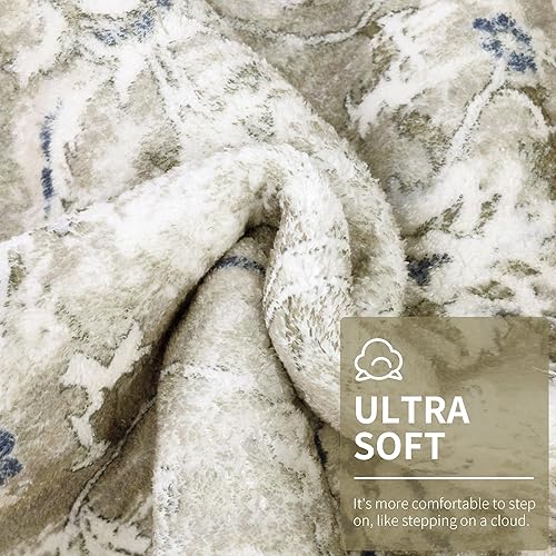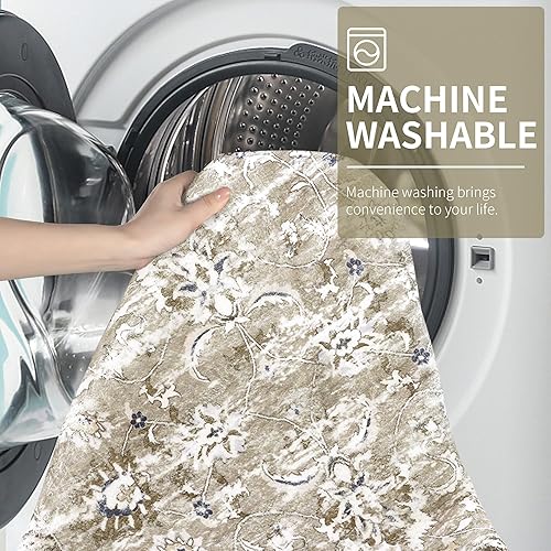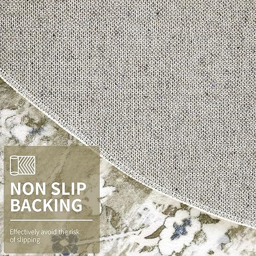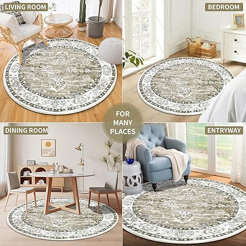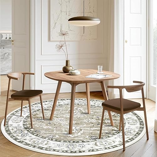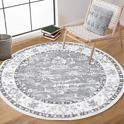 Enyhom Tapis Rond bohème de Luxe Vintage Doux et antidérapant - Lavable en Machine - Motif Floral - pour Salon, Chambre à Coucher, Salle de Bain - Gris - 120 cm