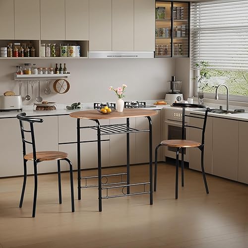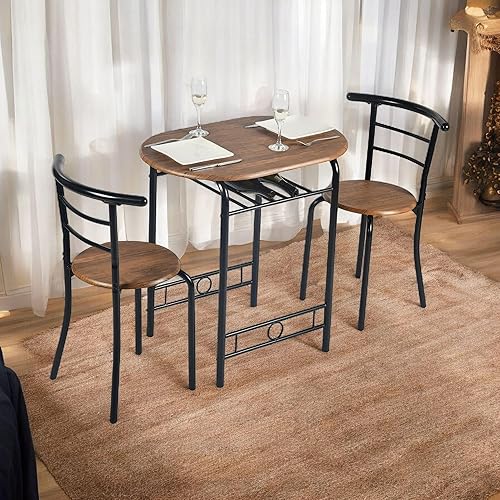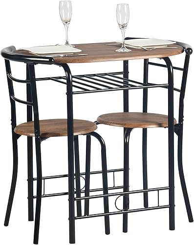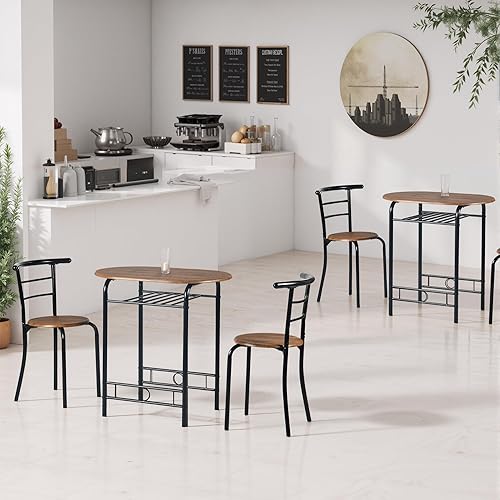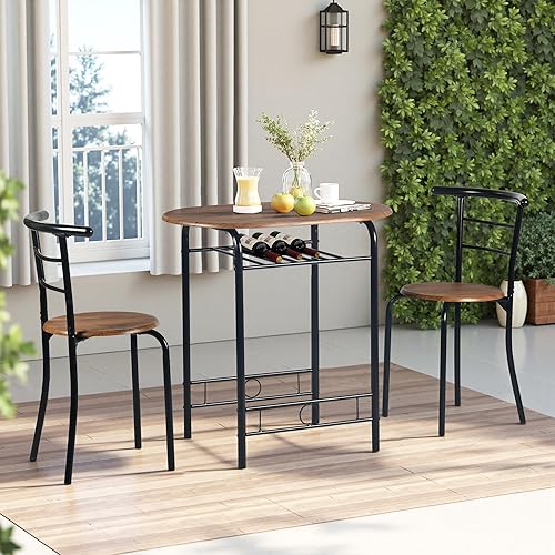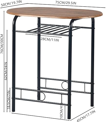FurnitureR Table Ronde avec Chaises pour 2 Personnes, Table de Cuisine Rétro-Industrielle Chic avec Porte-Bouteilles, Set de Salle à Manger pour Bistro, Jardin, Balcon, Petit Espace, Cadre en Métal