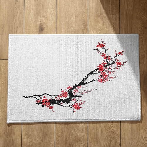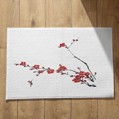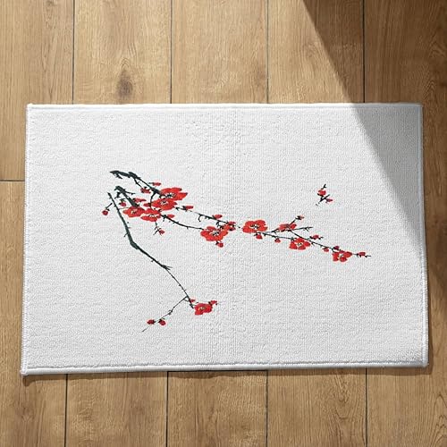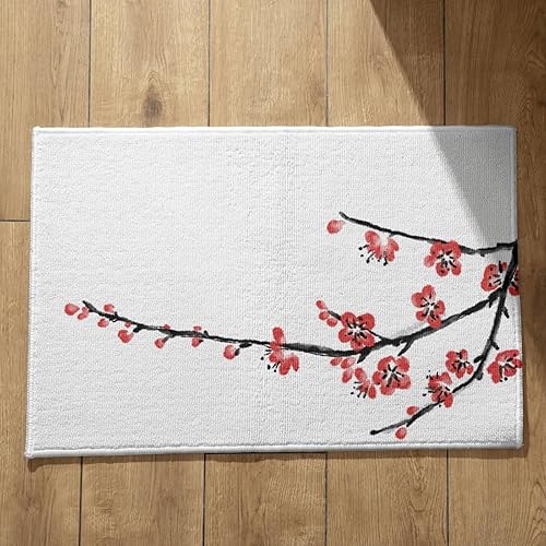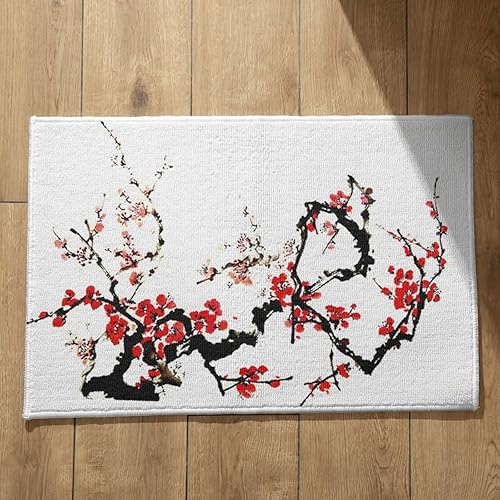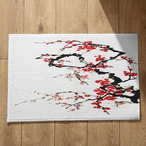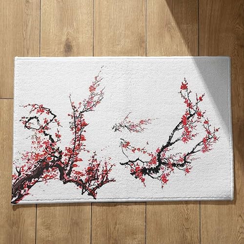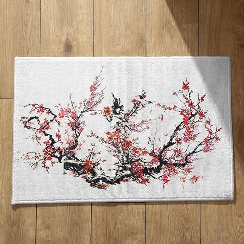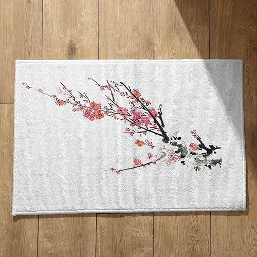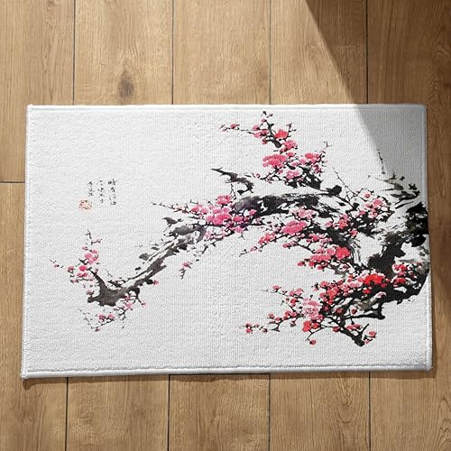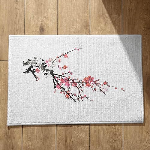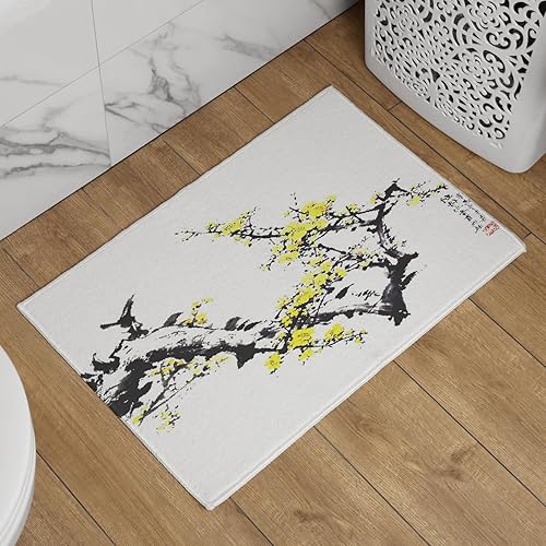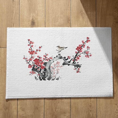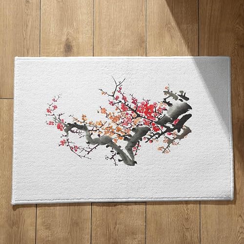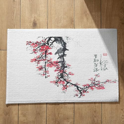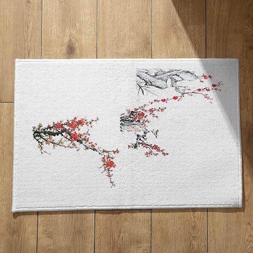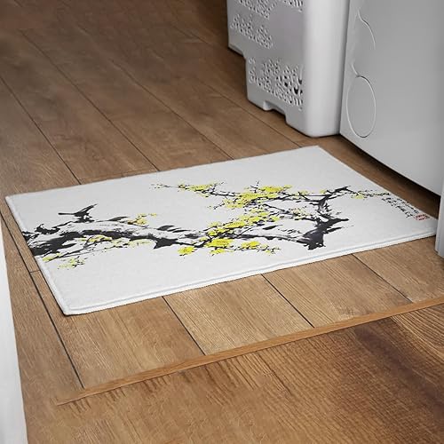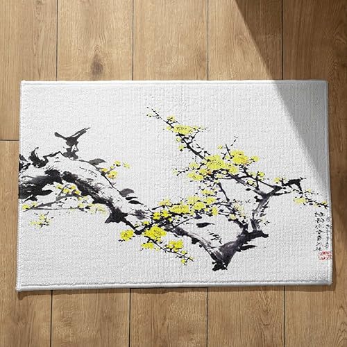 EHOMERY Tapis de Porte D'Entrée Interieur Fantaisie Personnalisé Peinture À L'Encre Chine, Paysage Cuisine Kitchen Lavable Machine 50x80cm, Noir Et Blanc