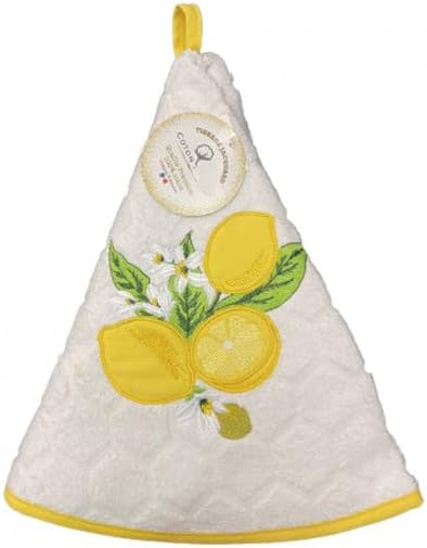 Générique Essuie Main Rond en éponge Tissage Jacquard Citron Blanc Qualité Premium