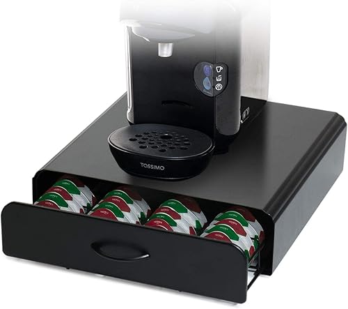 Home Treats Tassimo Porte-dosettes de café Tiroir de 64 capsules et support pour machine. Noir (Carbon black)