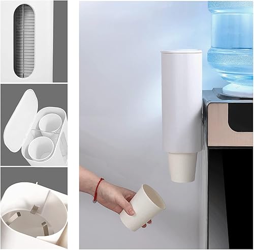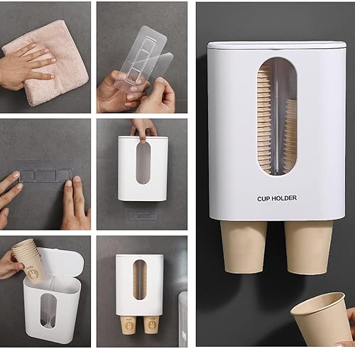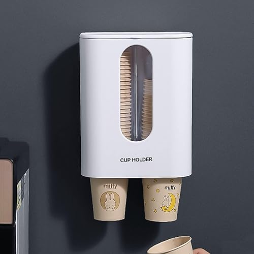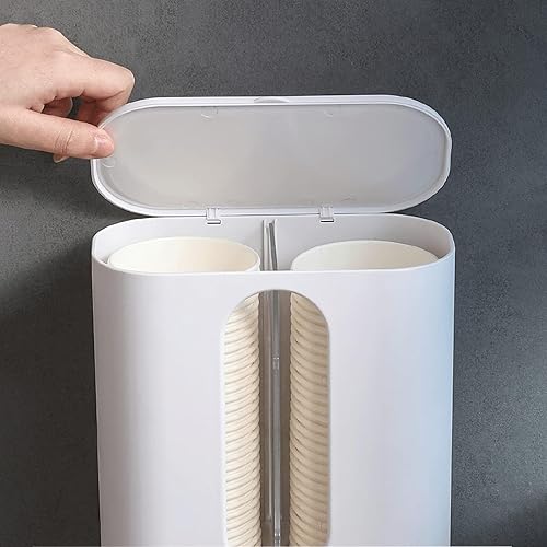 Distributeur de Gobelets Jetables Distributeur de Gobelets d'eau à Double Tube Support Mural pour Gobelets en Plastique Anti-Poussièreblanc Blanc pour Bureaux Maisons & Restaurants