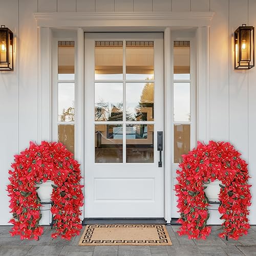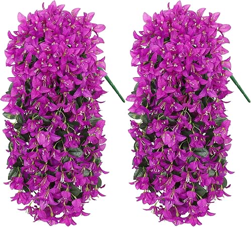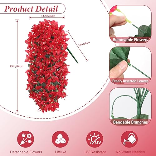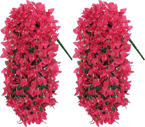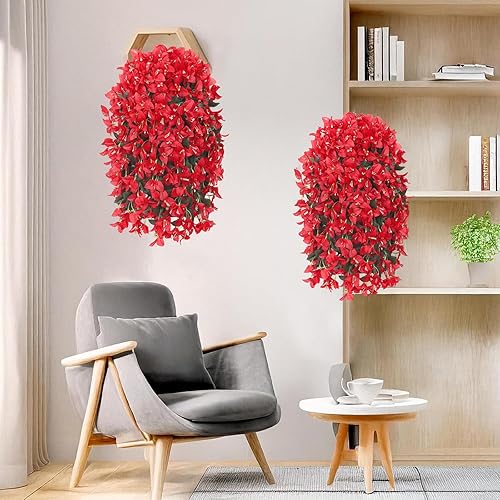 UXORSN 2 Pièces Fleurs Artificielles Suspendues Extérieures Plantes Artificielles Exterieur Bougainvillier Fleurs Artificiel Résistantes aux UV pour Extérieure Jardin Patio Balcon Décor (Rose Rouge)