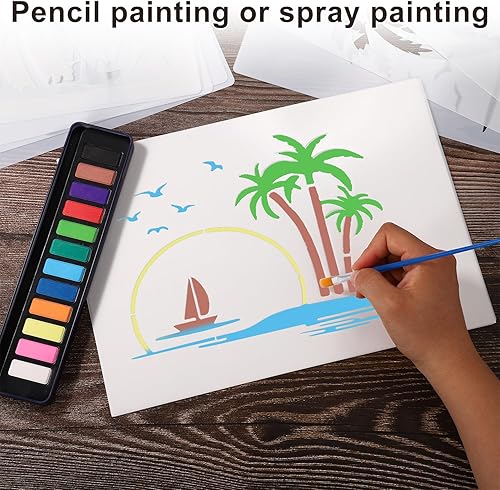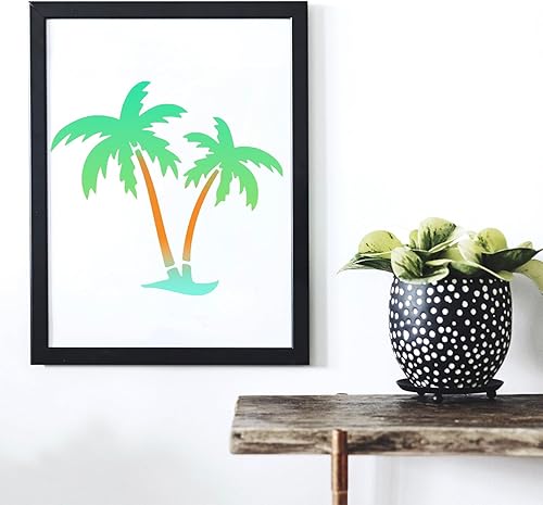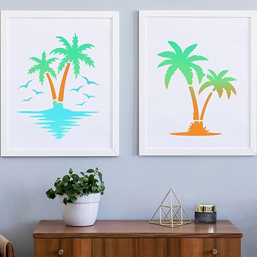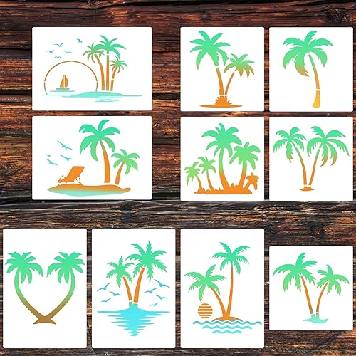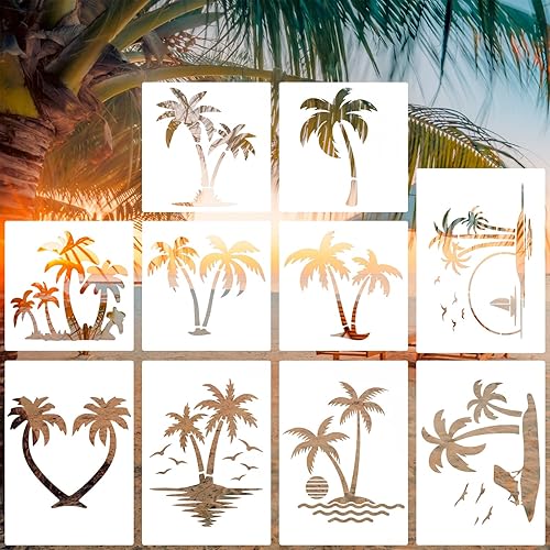 Tinoaly 10 Pièces Pochoir Palmier pour Peinture, 2 Tailles Réutilisables Pochoir Plage d'Été Modèles d'Arbre pour Peindre sur les Murs la Toile les Meubles l'Artisanat de Bricolage