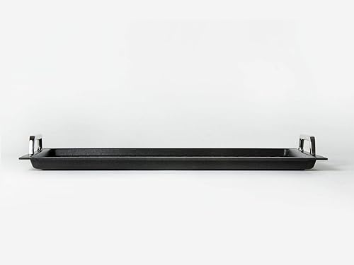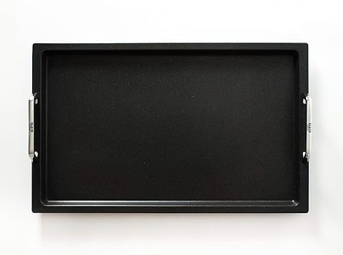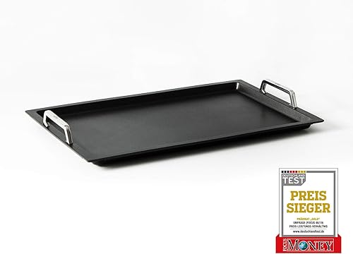 Plaque de cuisson Gastronorm GN 1/1 avec grill - Fond AMT Gastroguss, 53x33 cm, 2 cm profondeur, avec poignées en acier inoxydable, revêtement anti-adhésif Lotan® - Non induction, AMZN-KG-25333-G-BBQ