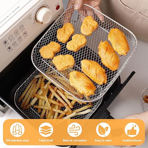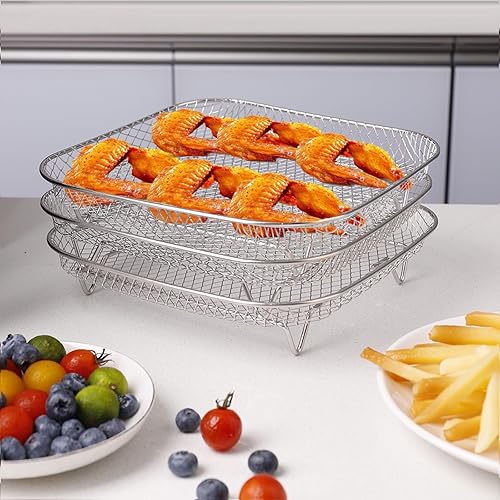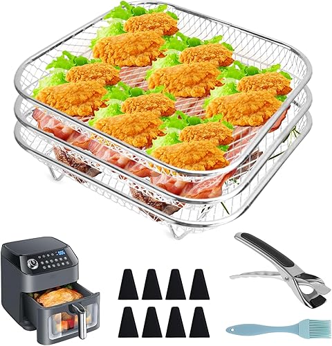 KXVXXV Airfryer Paniers empilables, grille pour friteuse à air chaud, 20 cm, accessoires de friteuse à air chaud Cosori 5,5 L/6 L, pour Ninja Max Pro 6,2 L AF180EU, accessoires Airfryer en acier