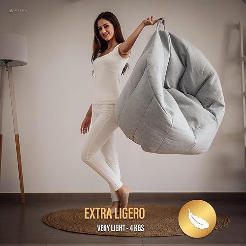 Aiire Fauteuil Pouf Salon Moderne - Canapé Pouffe Géant Interieur Adulte ou Ado avec Remplissage pour Décoration de la Chambre – Gros Bean Bag XXL ou Coussin de Sol Beige