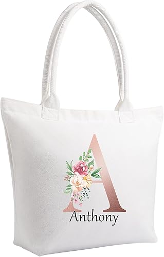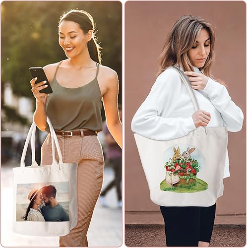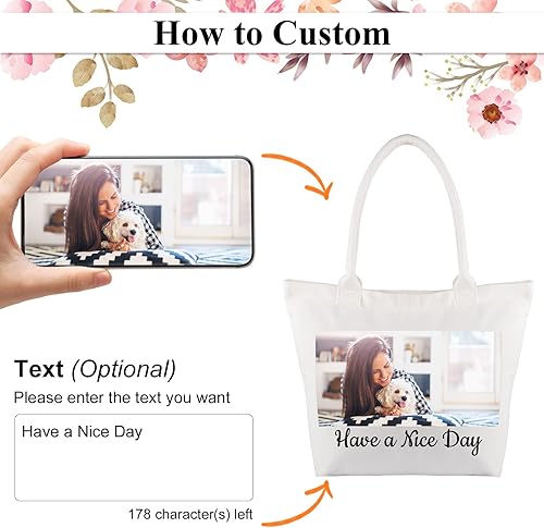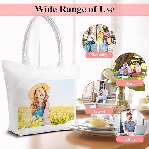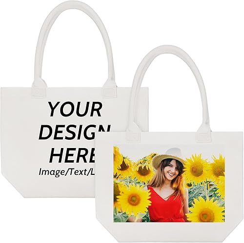Fyore Sac cabas personnalisé, sac cabas en toile avec fermeture éclair personnalisée avec photo et texte pour activité de promotion publicitaire DIY