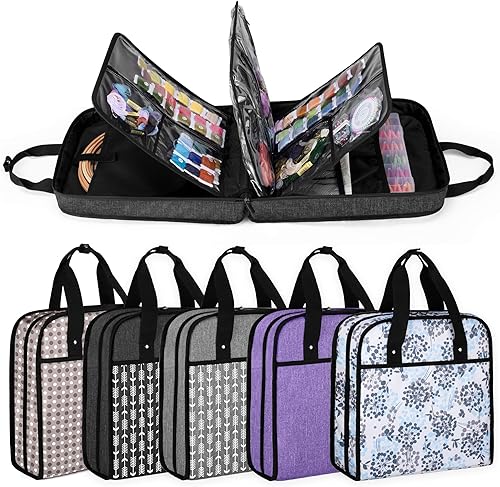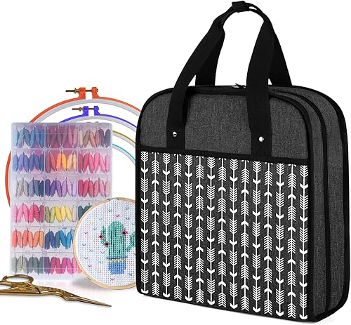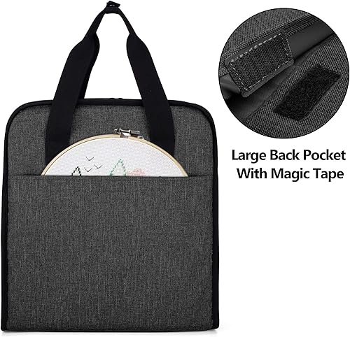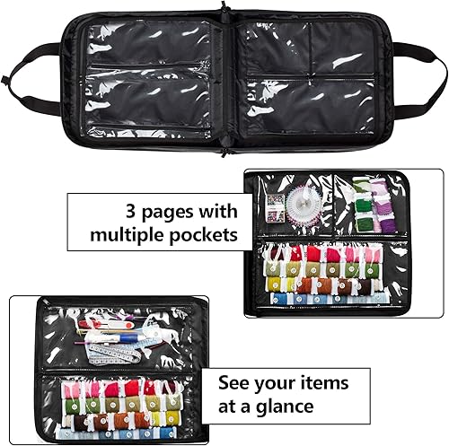 YARWO Sac de Rangement pour Broderie Kit, Organisateur pour Cercles à Broder, Fils Broderie et Autres Accessoires de Tambour Broderie, avec 16 Poches Zippées Transparentes, Noir(SAC UNIQUEMENT)