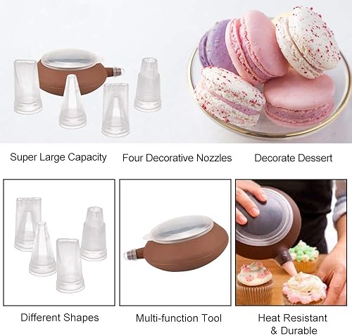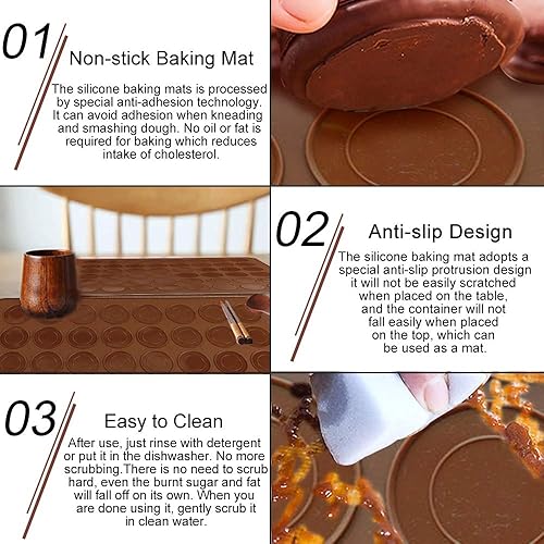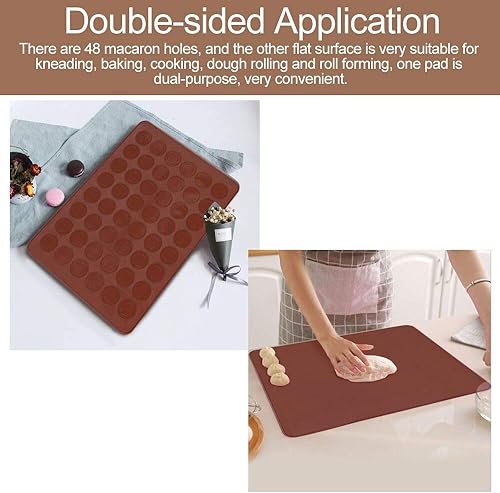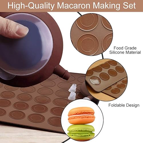 DURANTEY Tapis de Cuisson Macarons Plaque à Macarons Silicone Antiadhésif Moule Macarons Silicone 48 Coques avec 1 Poche à Douille et 4 Douilles de Formes Differentes pour Macarons à Cupcakes