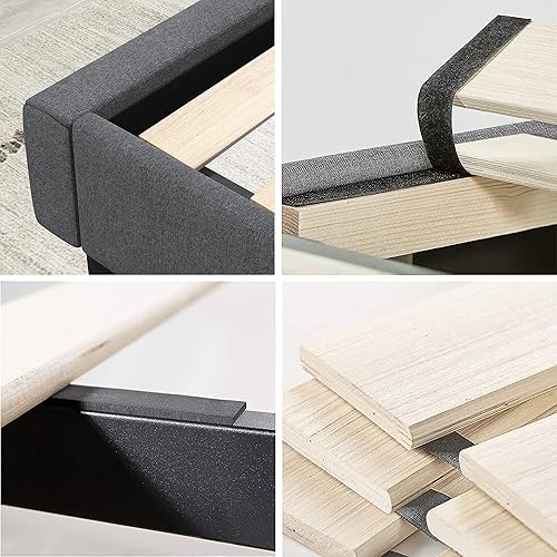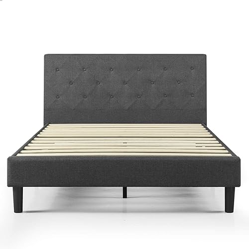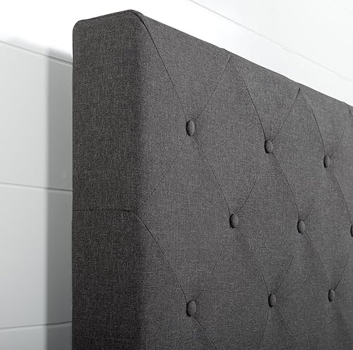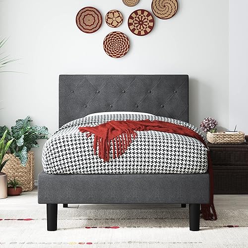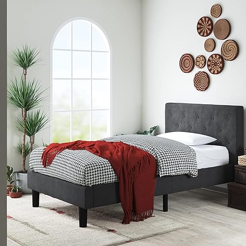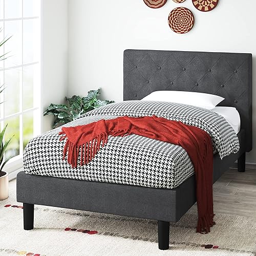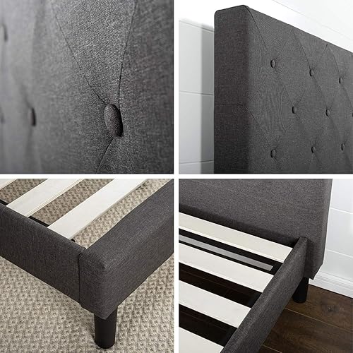 Zinus Shalini Lit 90x190 cm - Hauteur du cadre de lit 35 cm - Cadre de lit plate-forme rembourré avec support de lattes en bois - Gris foncé