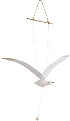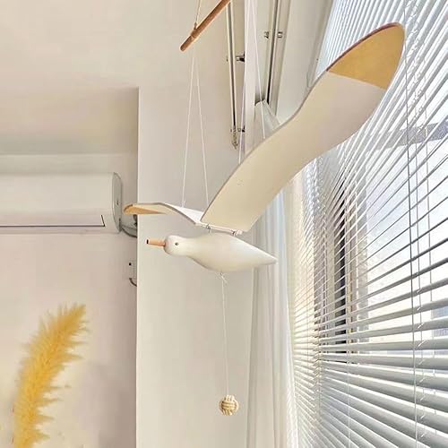 Socueny Mouettes EnvoléEs Suspendues Aile Mobile en Bois DéCoration de Mouette Volante Pendentif de Plafond DéCoration Murale Nautique Unique pour