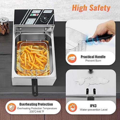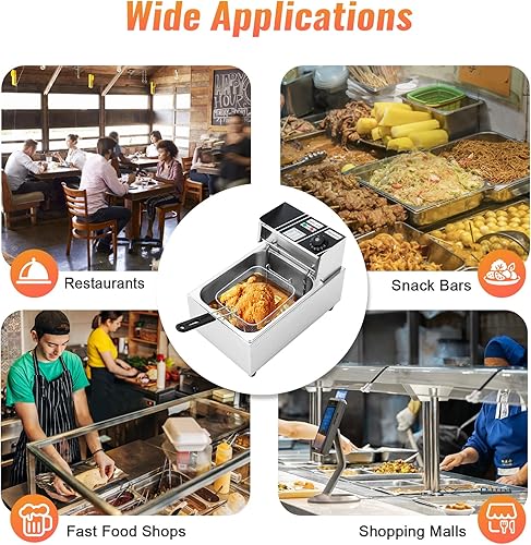 SICHENSH Friteuse électrique, en acier inoxydable, de 6 l, de 2500 W, pour restaurants ou centres commerciaux