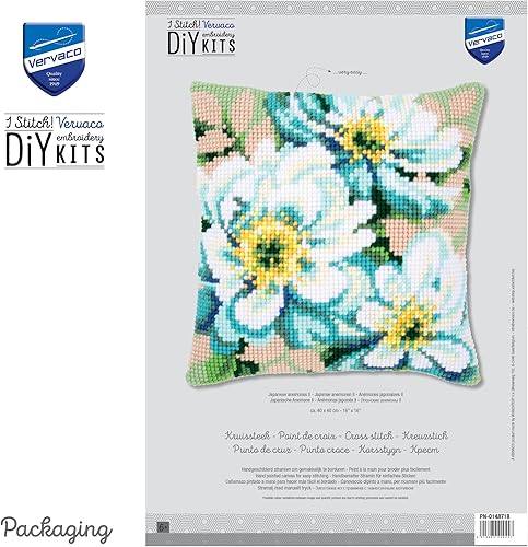Vervaco, Kit Coussin Point De Croix, Anémones Japonaises II, Multi-Couleurs