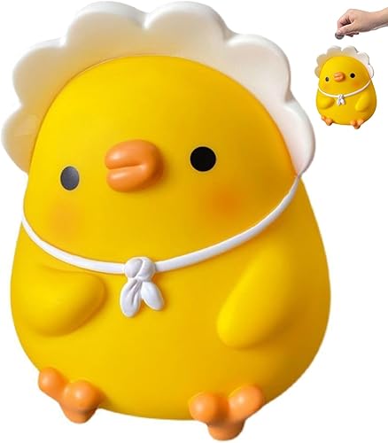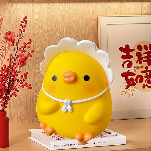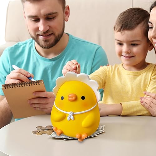 Tirelire en forme de poulet, grande capacité, 14 x 13 x 16 cm, joli motif volaille, résine, bouchon amovible, jaune, 1 pièce pour