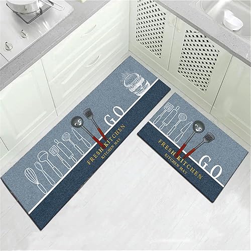 Treer Tapis de Cuisine pour Devant Evier Entrée Passage, Moderne Motif, Absorbant, Antidérapant et Lavable en Machine Tapis de Sol, Tapis de Bain Paillasson (Cuisson,40x120cm)
