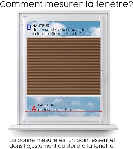 Concept Blinds Store Plissé Occultant sur Mesure – Installation Facile sans Perçage – Largeur 30–170 cm x Hauteur 20–240 cm – Stores Plissés Occultants pour Fenêtres et Portes