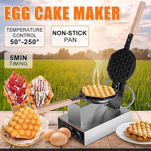 Gaufrier à Bulles, Machine à gâteau aux œufs électrique 1400 W avec température réglable de 50 à 250 °C, gaufrier Commercial Rotatif à 180 ° pour Restaurant, Magasin de Desserts Single
