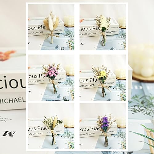 BLLREMIPSUR 6 Pièces Mini Bouquet Fleurs Séchées, Bouquet Fleurs Séchées Artisanales pour Loisirs Créatifs Décoration D'intérieur