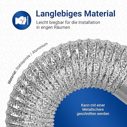 VIOKS Tuyau d'évacuation d'air flexible de 5 m pour hotte aspirante - Raccordement : 100 mm - Longueur : 5 m - Matériau : aluminium [kitchen]