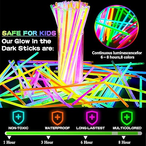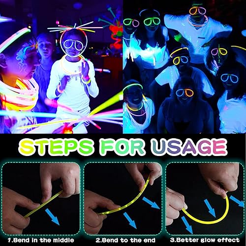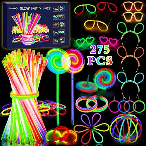 Amzeeniu 275PCS Bracelet Fluorescent Lumineux,Bâtons Lumineux Bracelets Fluorescents Lumineux Glow Party Favors Enfants Adultes,Décoration Anniversaire,Bracelet Lumineux Mariage et Festivals Carnavals