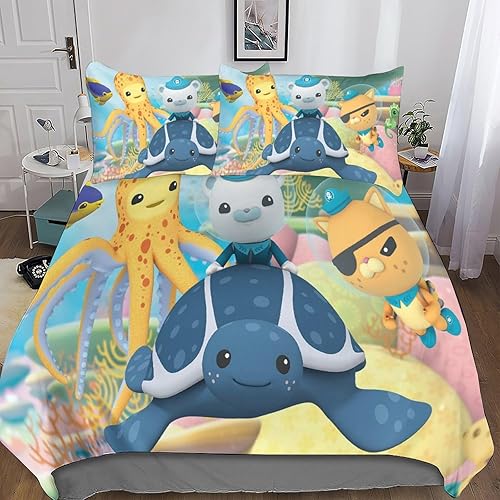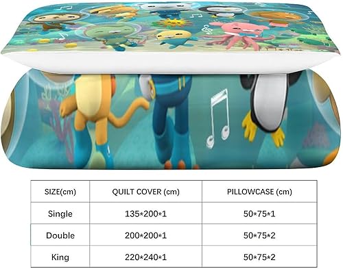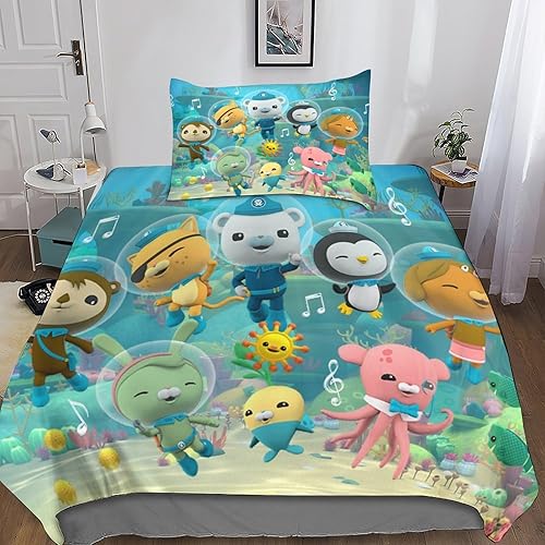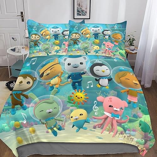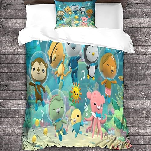 HESHS 3D, Imprimé Octonauts Parure De Lit Microfibre Super Douce Et Respirante Sets De Housses De Couettes 3 Pièces Et Taie d'oreiller Single(135x200cm)