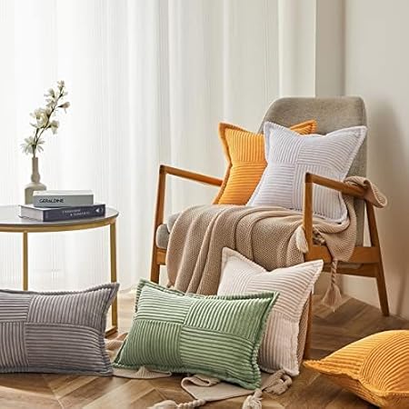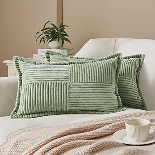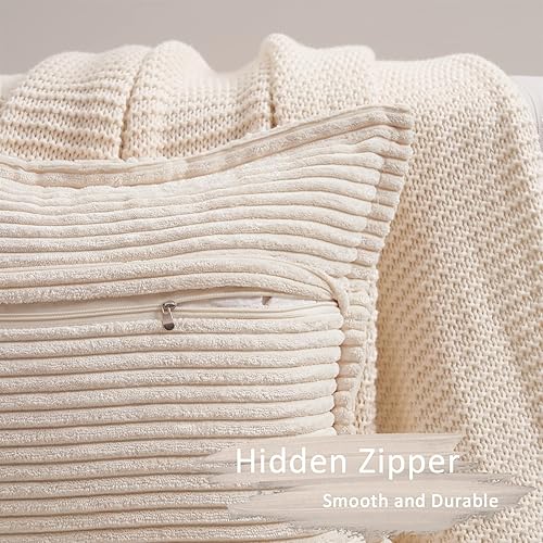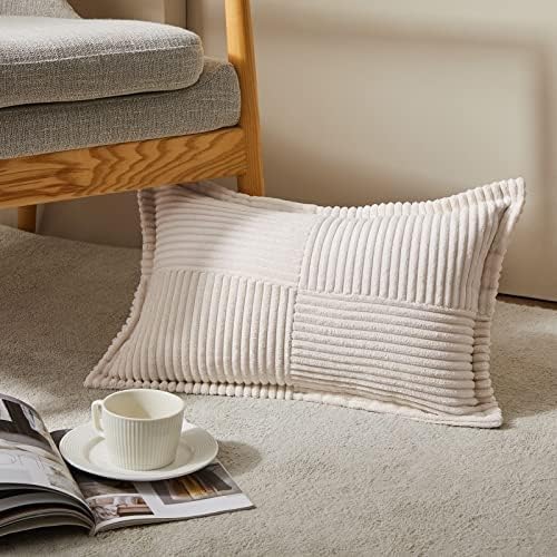 Topfinel Housse Coussin Canapé 40x40 Taie Oreiller Lot de 2 en Velours Côtelé Beige à Motif Croisé Decoration Chambre Salon de Jardin Fauteuil Chaise Lit Boheme Scandinave