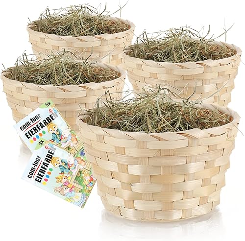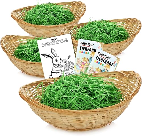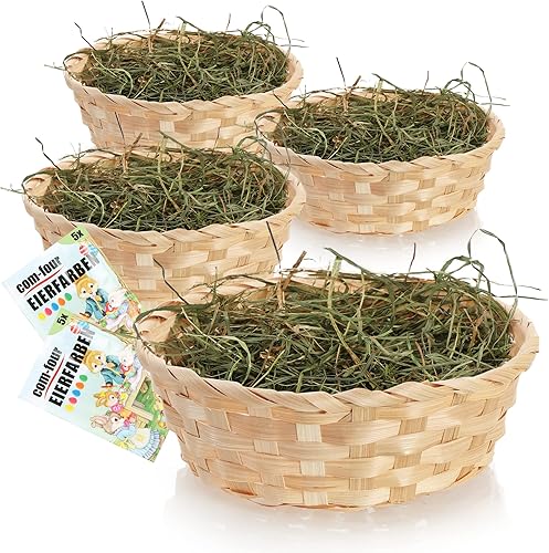 com-four® 4X paniers de Pâques avec Herbe décorative et Couleur d'oeuf - paniers de Pâques avec du Vrai Foin de Prairie de Montagne - Panier de Raphia (Set Nature Marron 4)