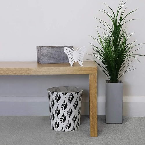 JVL Petite Corbeille à Papier en Forme de Feuilles, Environ 24,5 x 26,5 cm, Noir et Blanc, Taille Unique