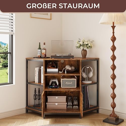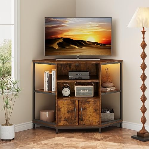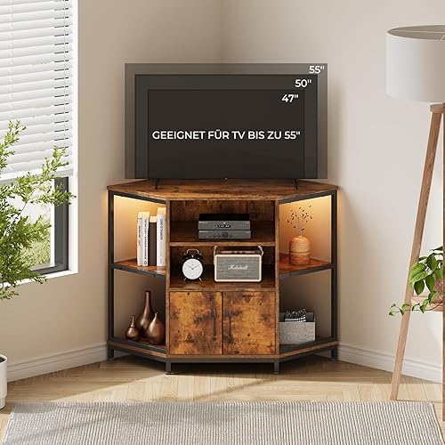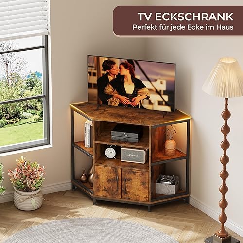 Dripex Armoire d'angle TV avec éclairage LED - Commode d'angle pour Salon - Design Industriel - 105 x 50 x 79 cm - Marron Vintage