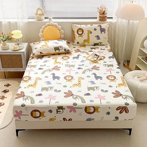 Zoo Animal Drap-housse, 90 x 200 cm, pour enfant, protège-matelas 90 x 200 cm, style draps-housses, pour matelas de 25 cm (A, 140 x 200 cm x 25 cm)