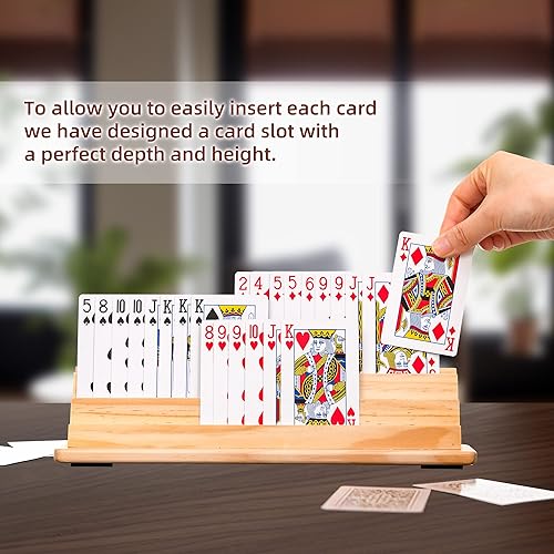 wefaner Lot de 2 supports de cartes à jouer en bois, pour personnes âgées, enfants