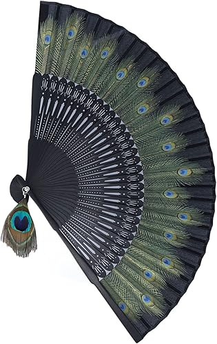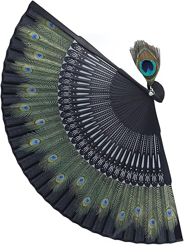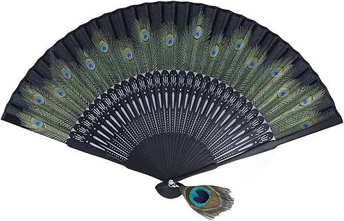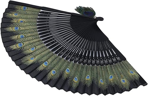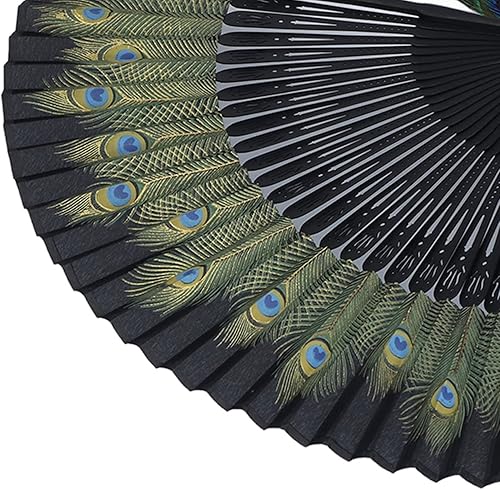 Décoration d'éventail Pliant Style Chinois d'éventail de Paon Chinois Beau Motif de Paon Os Antiques Os Noirs Style Oriental Vintage Bambou Style Asiatique Pinceaux