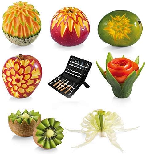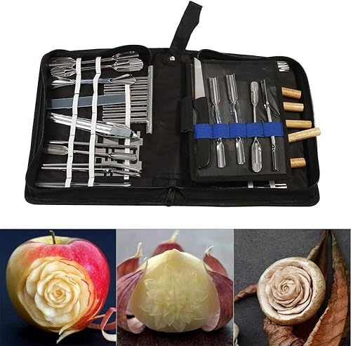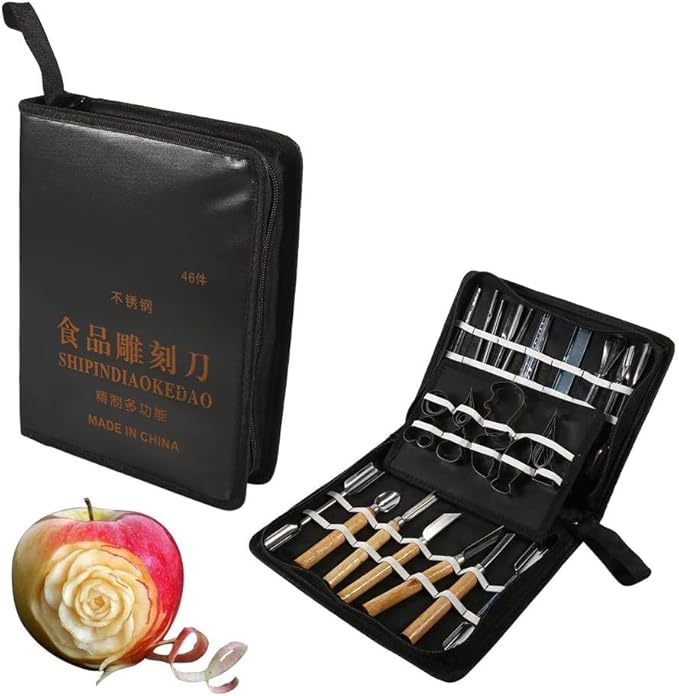 Zerodis Kit Outils Sculpture Aliments Portable Outils de Sculpture Culinaire Set Portable Garnishing/Cutting/Tranchage Garniture Outils Kit pour légumes Fruit alimentaire 46Pcs