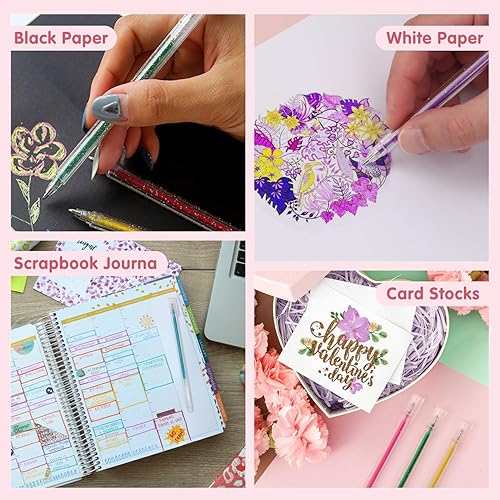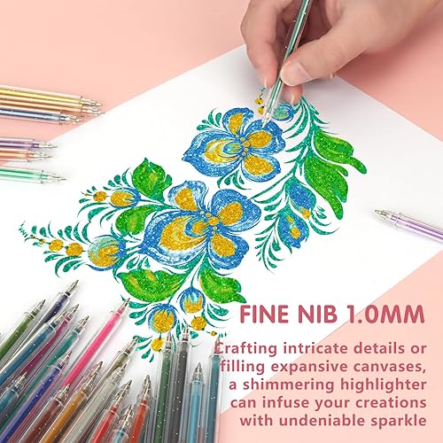 MOTIBACK Lot de 48 stylos gel pailletés pour adultes et enfants pour marquage, dessin, écriture, stylos à bille lumineux à paillettes pour filles