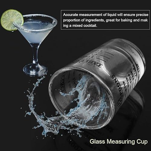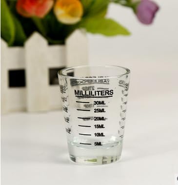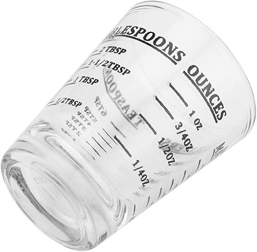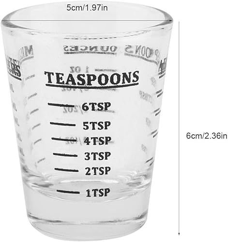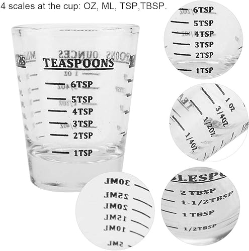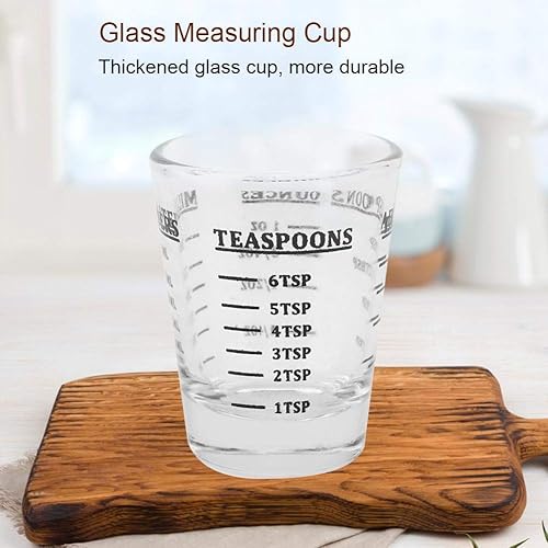 Nikou Petite Tasse à Mesurer en Verre, Mini Verre Doseur, oz/ml/CuillèRe à Café/CuillèRe à Soupe 4 éChelles 1 Once 30ml Outil de Cuisine