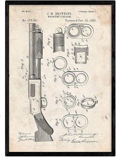 Nacnic Affiche Revolver de brevet. Feuille avec le vieux brevet de dessin en format A3 et vintage background