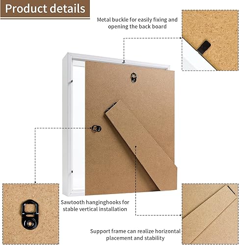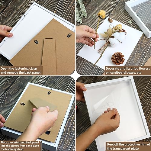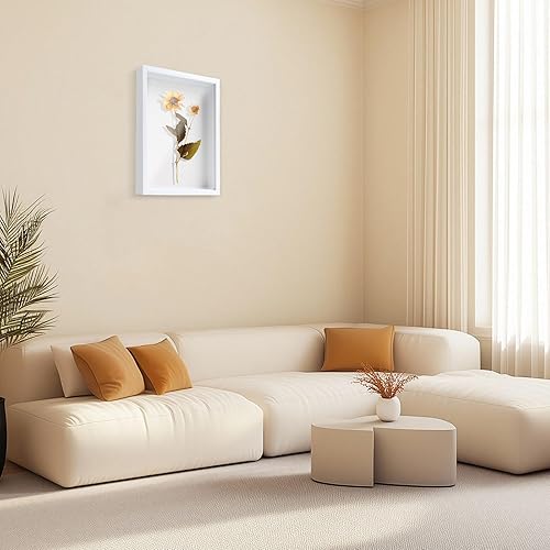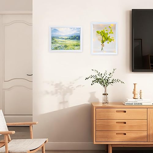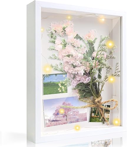 Brmeday Cadre photo 3D, profond, à remplir, avec lumière LED, 25 x 20 cm, pour objets jusqu'à 3 cm, blanc, idéal pour mariage, bureau, cadeaux de fête des pères