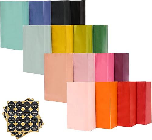 Gcardist Lot de 32 sacs en papier de 13 x 8 x 24 cm - 16 couleurs arc-en-ciel - Petit sac cadeau de fête - Mini sac à goûter sans poignée (5,1 x 3,1 x 9,4 pouces, 32 autocollants inclus)
