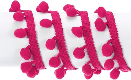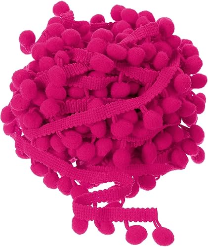QUARKZMAN Bordure Garniture À Franges En Boule De Pompons De 10 Mètres, Ruban Accessoire Couture Artisanat Pour Rideaux, Vêtements, Décoration D'Oreiller (12Mm, Fuchsia)