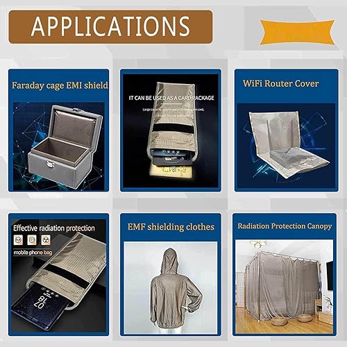 YSPP Protection Tissu Faraday en Maille Enduite d'argent Tissu de Blindage EMI, RF RFID Tissu de Protection RF et RFID Faraday pour WiFi Bluetooth GPS Largeur 1.1m,silver-5x1.1m