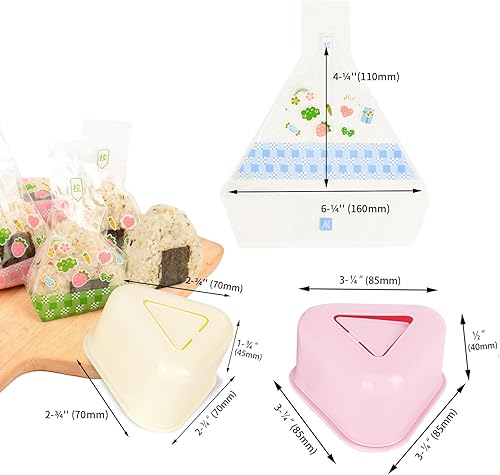 Lot de 2 moules triangulaires Onigiri + 100 emballages jetables Onigiri - Kit de fabrication de boules de riz à sushi